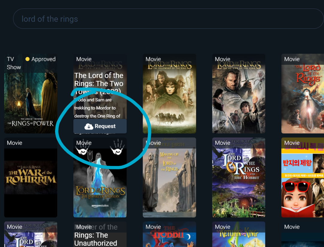 Svo farið þið með músina yfir þá bíómynd eða þátt sem þið eruð að leita að og klikkið á Request